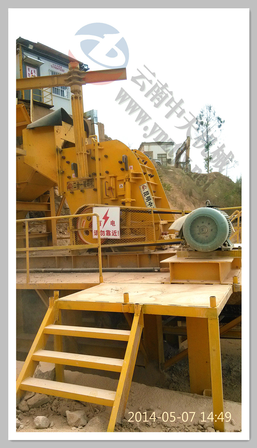 云南昆明安寧施總有著多年石料場生產(chǎn)經(jīng)驗,也是云南中天礦山機械制造有限公司砂機王客戶。三年前,施總購買過我公司砂機王產(chǎn)品用來制砂,感覺質(zhì)量不錯,產(chǎn)品除了磨損大一點基本沒什么問題。施總是希望研究的石料場老板之一,喜歡自已動腦筋想辦法,而且對新產(chǎn)品十分感興趣,他一直在關(guān)注我公司不斷研發(fā)生產(chǎn)的新產(chǎn)品。針對物料磨損含鎂的情況,這次石料場的改造,沒有考慮過其他破碎廠家的產(chǎn)品,直接確定選擇云南中天礦山機械制造有限公司最先進的二合一高轉(zhuǎn)速反擊式破碎機。該套生產(chǎn)線根據(jù)地形情況,選擇了二合一配振動篩的設(shè)計方案,使用下來,磨損情況大大降低,預(yù)計每小時生產(chǎn)80噸,實際用下來接近每小時120噸,這可能與物料好破碎有關(guān),遠遠超出來客戶的預(yù)想!二合一高轉(zhuǎn)速反擊破上機體破碎空間大,依靠石打石及石打鐵原理,加上高轉(zhuǎn)速接近傳統(tǒng)反擊破的兩倍,破碎效果相當(dāng)好。